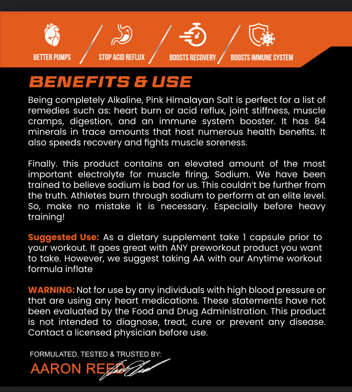 Warning: Not for use by any individuals with high blood pressure or that are using any heart medications. These statements have not been evaluated by the Food and Drug Administration. This product is not intended to diagnose, treat, cure or prevent any disease. Contact a licensed physician before use.