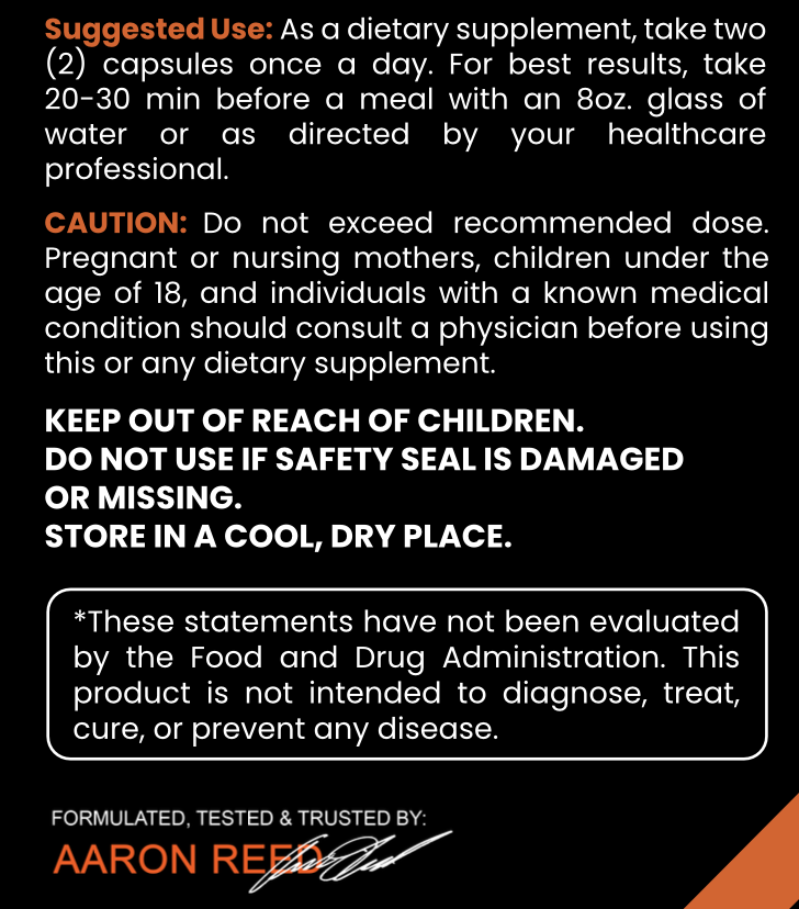Do not exceed recommended dose. Pregnant or nursing mothers, children under 18, and individuals with a known medical condition should consult a physician before using this or any dietary supplement.