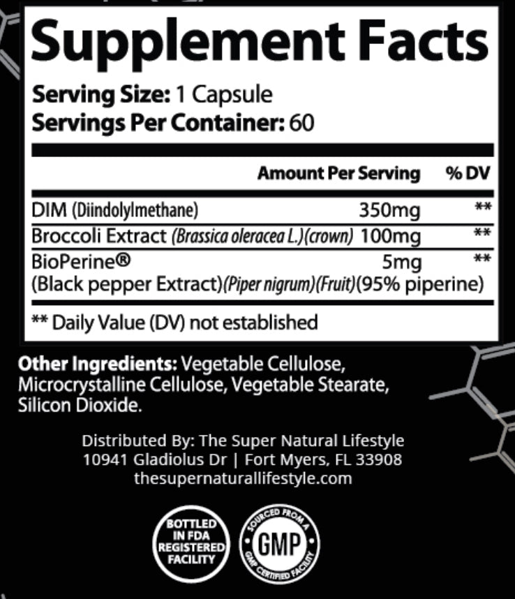 DIM (Diindolylmethane) is a naturally occurring compound found in cruciferous vegetables such as broccoli, cabbage, and kale. It is commonly used as a dietary supplement for its potential health benefits.