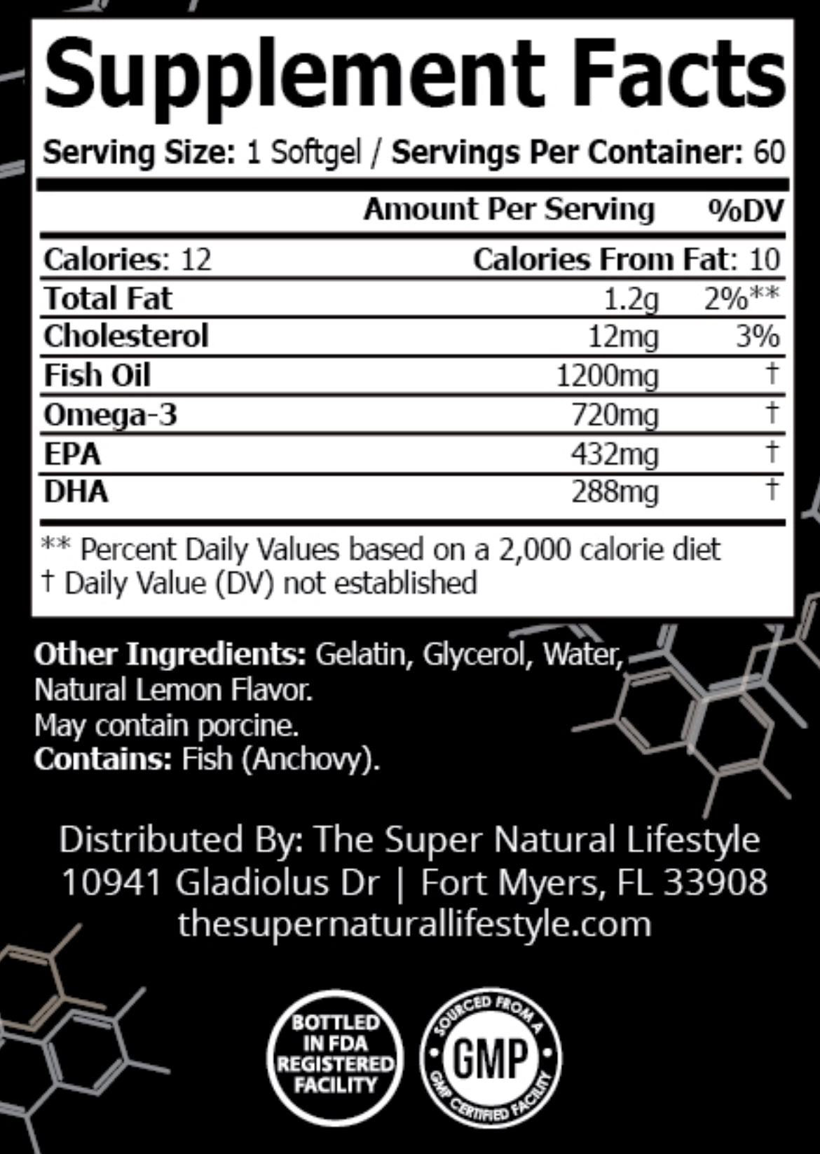 Manufactured in a strict quality control environment our Omega 3 Fish Oil is tested for known contaminants. Using only 100% pure sea-harvested pelagic fish oil, making this supplement Extremely high in EPA and DHA. These nutrients are important to the brain, heart and joints. That’s why fish oil supplements have become a popular daily supplement from athletes to baby boomers with concerns about aging.